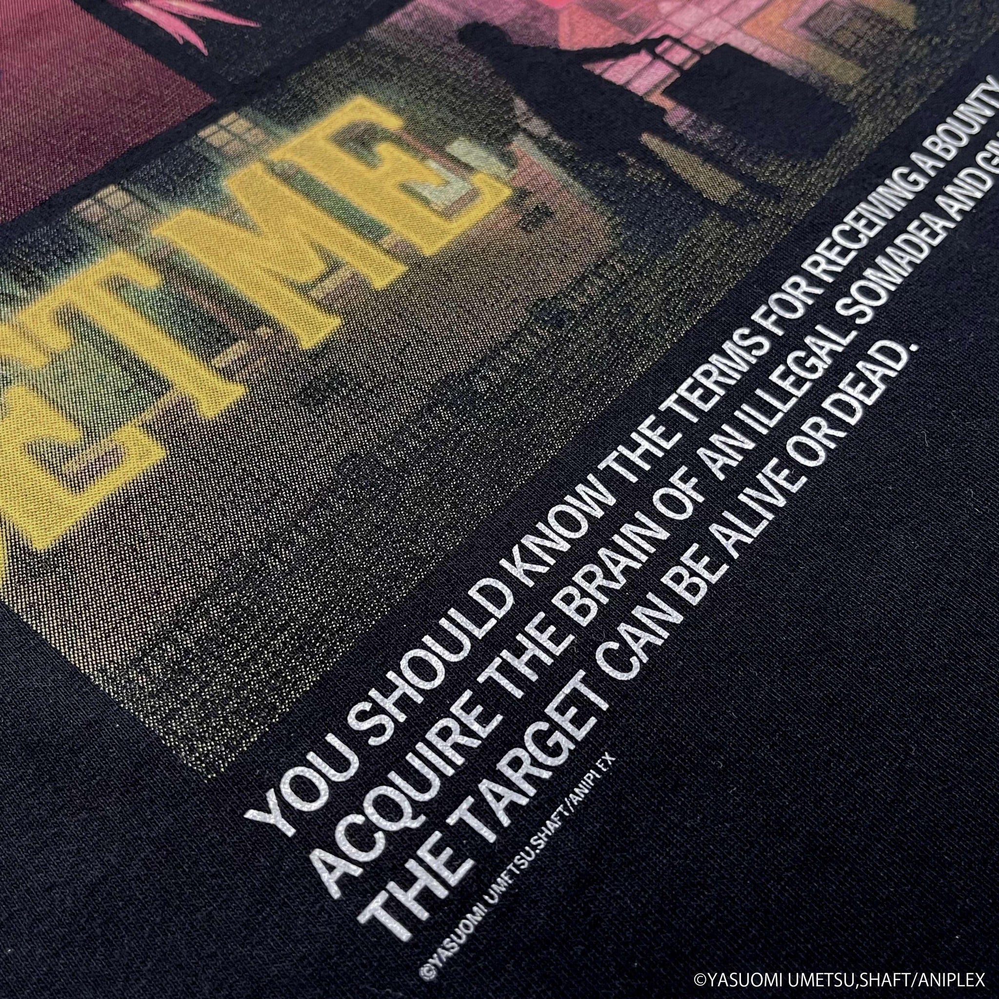 The OP Sequence T-shirt features the opening scene depicting Kamigori Ubu’s journey as a bounty hunter as the main back graphic.