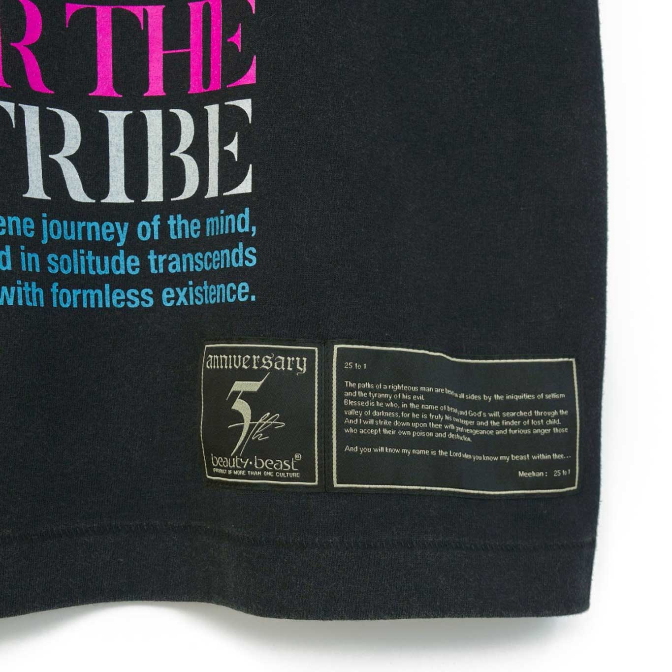 At the hem, a statement defining the ultimate form of contemporary eroticism is placed. The print employs messa’s signature multi-color (8-screen) pigment printing technique, developing a unique, vintage-like texture the more it is worn.